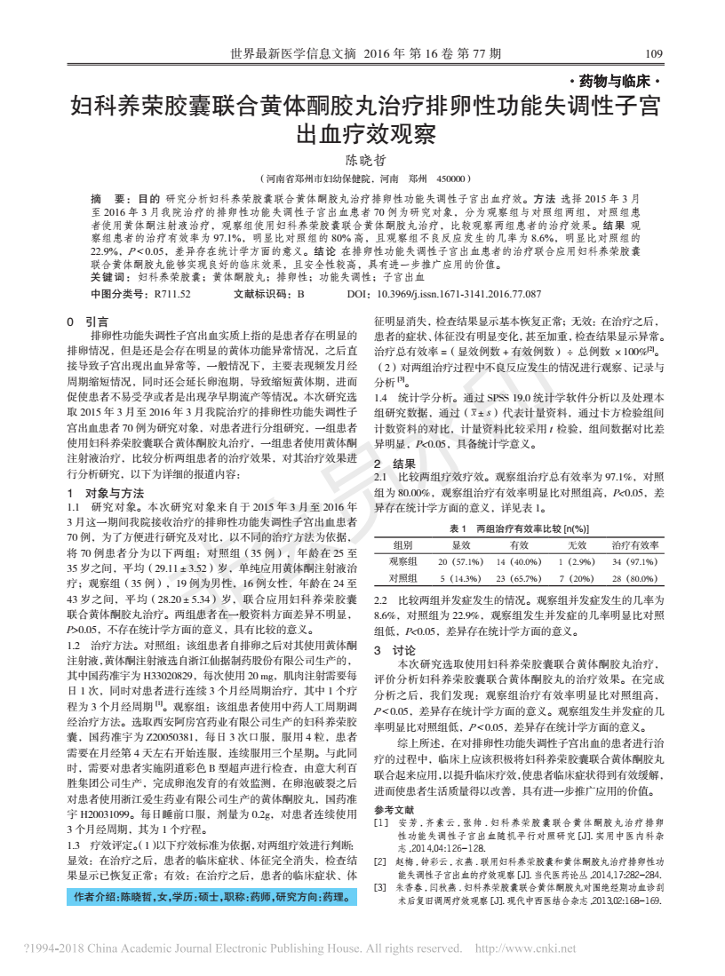 5.妇科养荣胶囊联合黄体酮胶丸治疗排卵性功能失调性子宫出血疗效观察