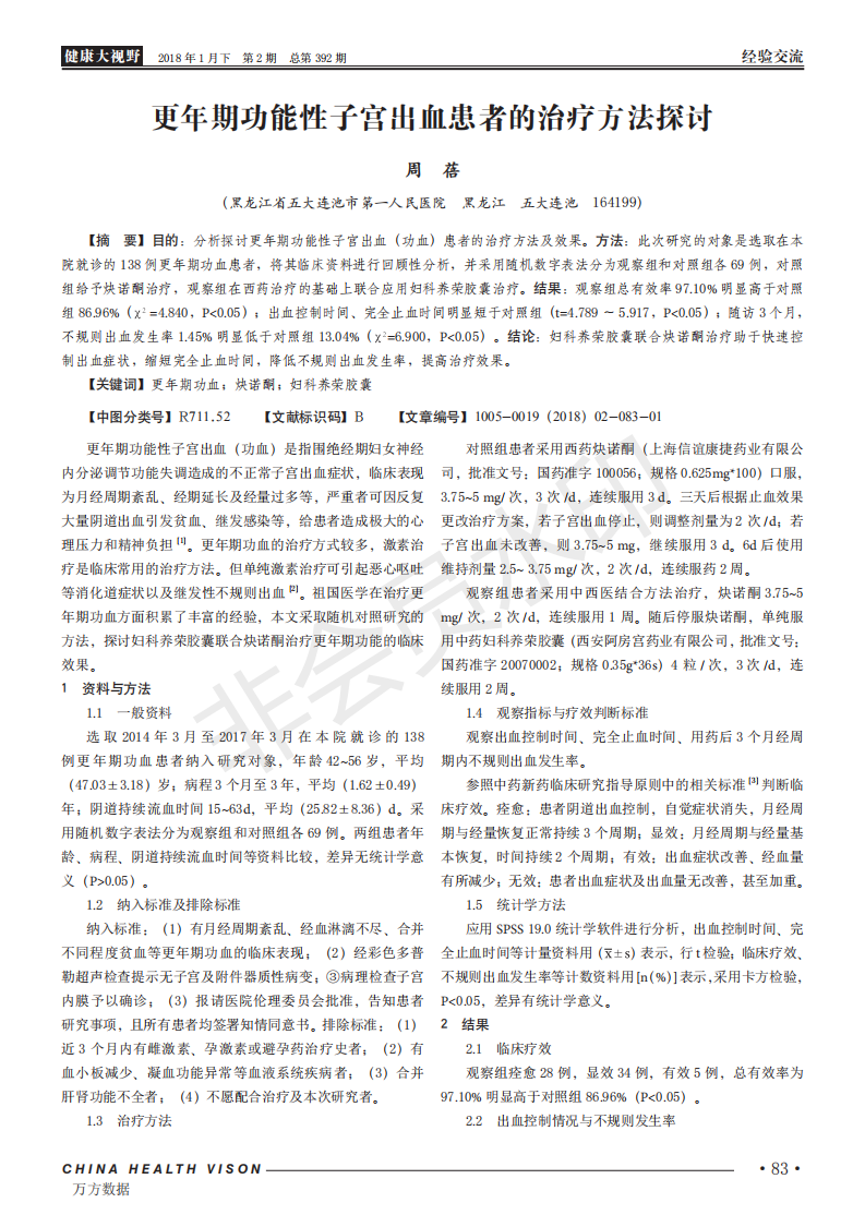 21.更年期功能性子宫出血患者的治疗方法探讨