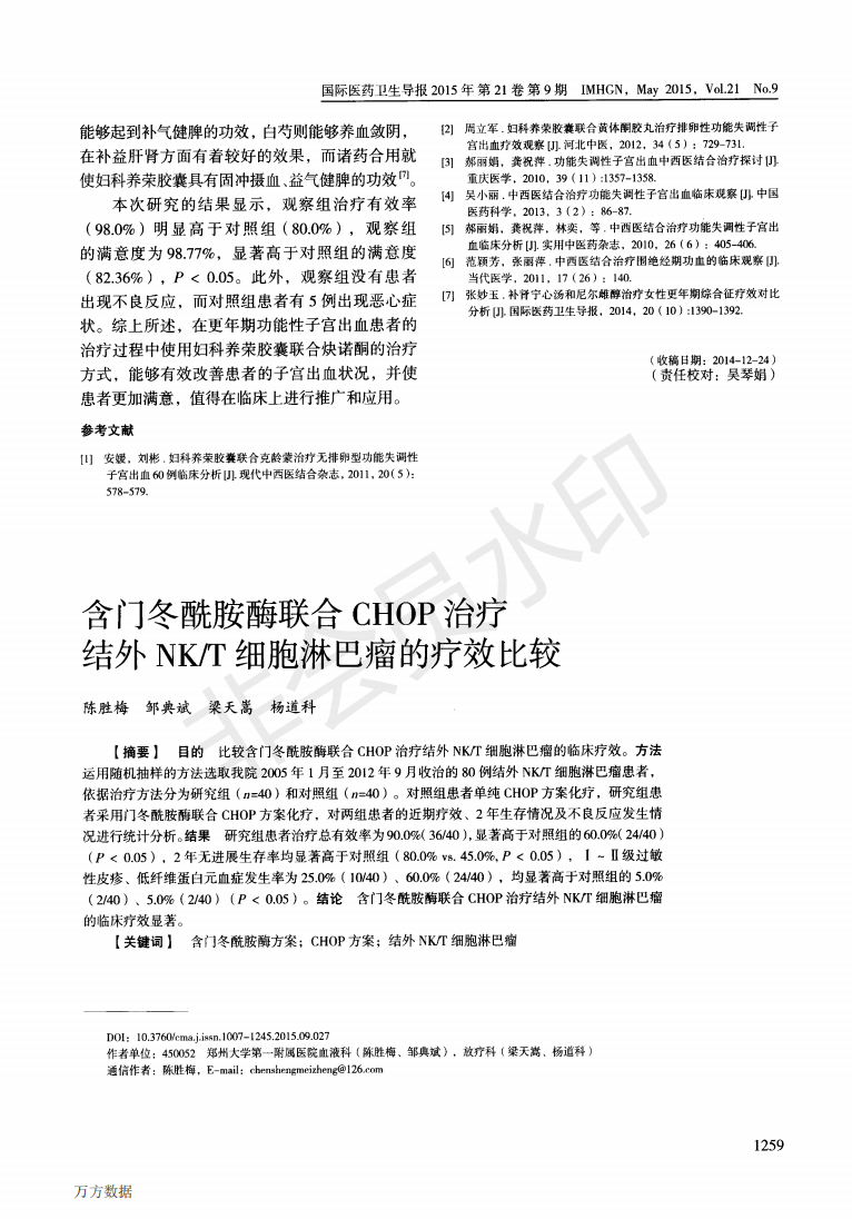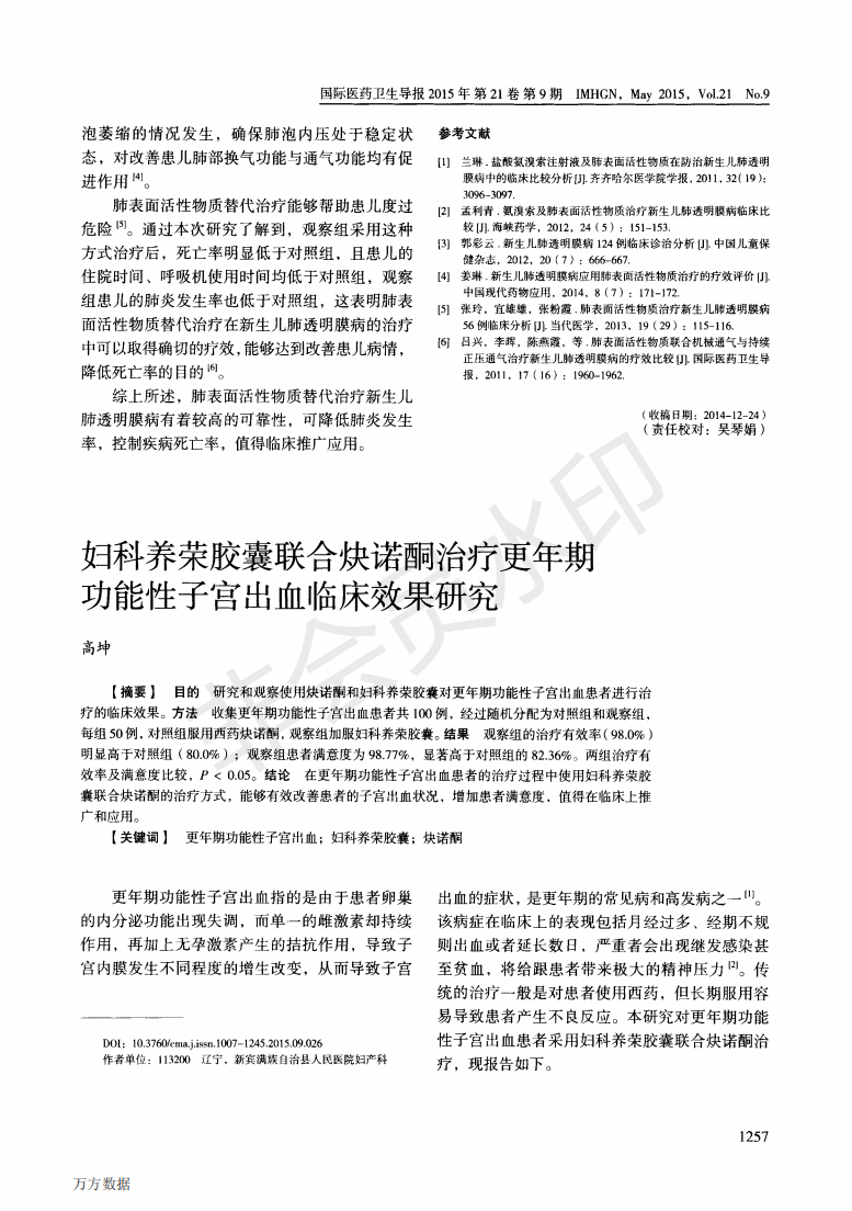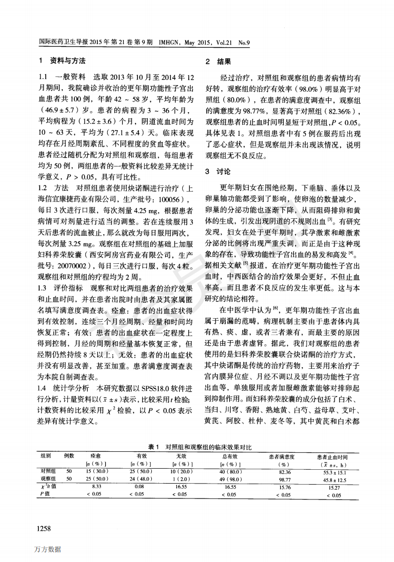 27.诀诺酮与妇科养荣胶囊治疗更年期功能性子宫出血的效果评价